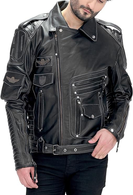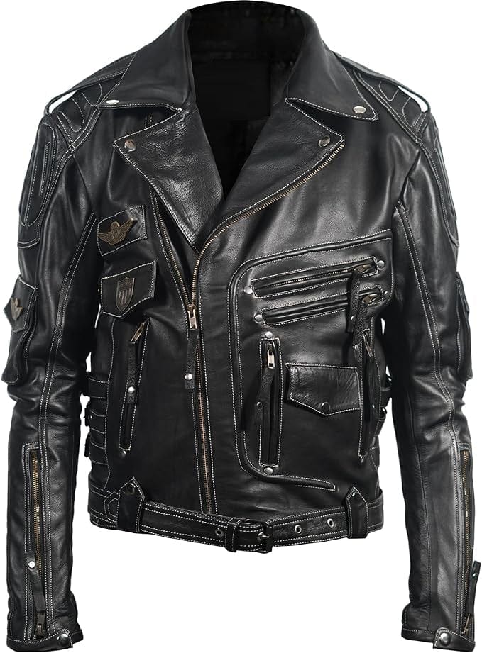 The Motorcycle Distressed Black Genuine Leather Jacket is made for riders who love rugged simplicity. It is crafted from top-grain leather, which is durable and has a rich texture. This material is strong and durable. It makes the jacket perfect for anyone who values rugged gear.